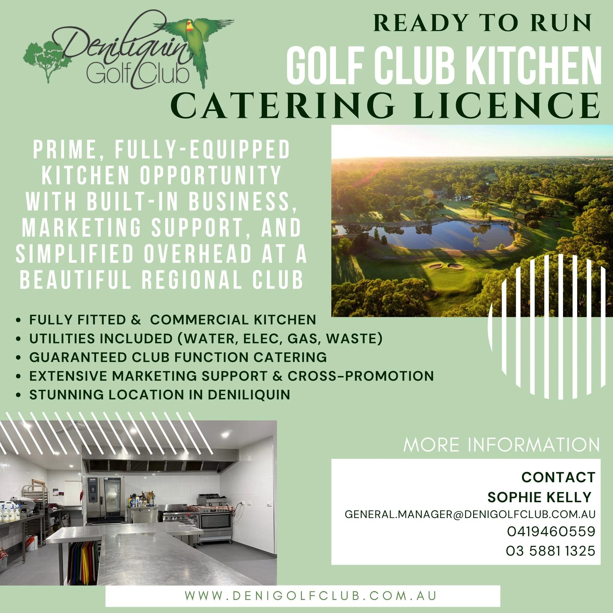 The Deniliquin Golf Club is offering a Commercial Kitchen Licence Agreement – your chance to run a fully-equipped kitchen with a built-in function business and extensive marketing support!